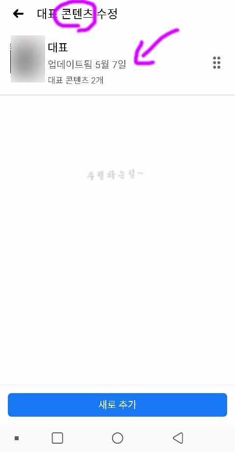수정을 누르고 이동하면 대표 콘텐츠 수정 이라고 명칭이 나오는데요 여기서 대표사진으로